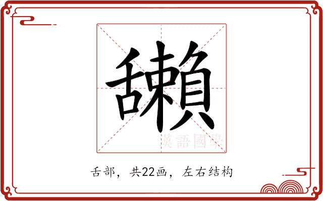 𦧺〕字是左右结构,可拆字为“舌、賴”。