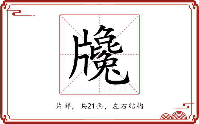 〔㸥〕字拼音是(chán),部首是片部,总笔画是21画