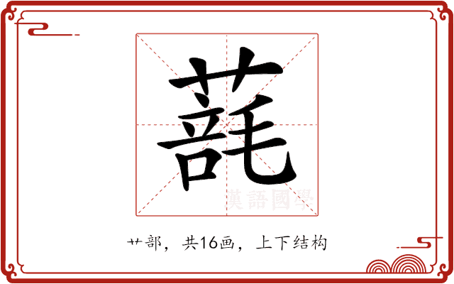 〔𦺑〕字是上下结构,可拆字为“艹、𰚢”或“艹、咅、毛”。