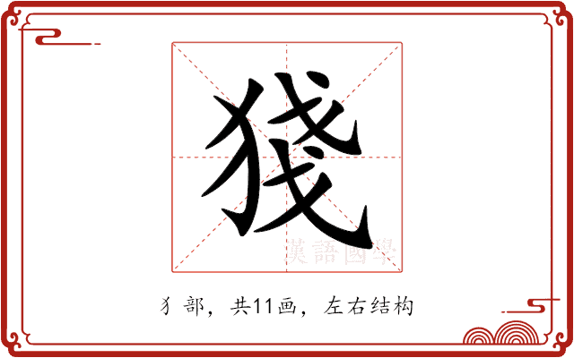 〔㹽〕字是左右结构,可拆字为“犭、戔”。
