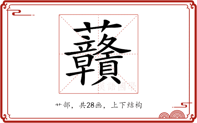 〔𧆐〕字是上下结构,可拆字为“艹、贛”。