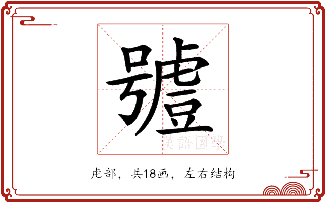𧇼〕字拼音是(hào),部首是虍部,总笔画是18画
