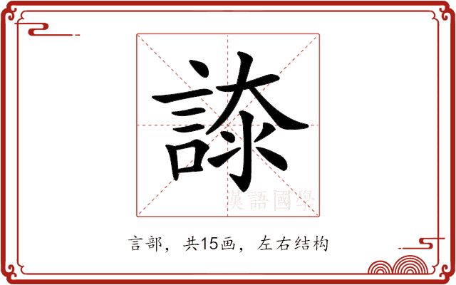 〔𧩚〕字是左右结构,可拆字为“言、大、氺”或“訁、大、氺”。