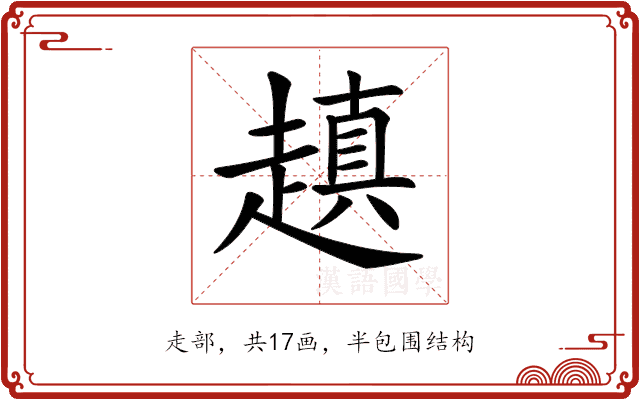𧽍〕字是半包围结构,可拆字为“走、真”。