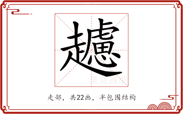〔𧾧〕字是半包围结构,可拆字为“走、慮”。