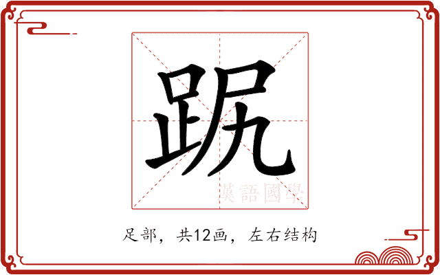 纠错〔𧿻〕字拼音是(jú),部首是足部,总笔画是12画。