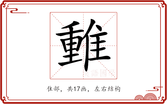 〔𨿿〕字拼音是(chǒng),部首是隹部,总笔画是17画。