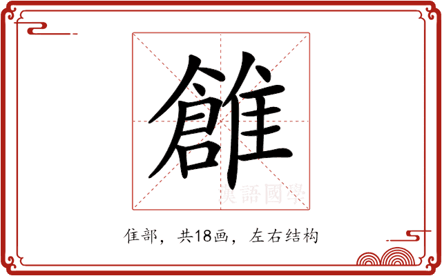 〔𩀞〕字拼音是(cāng),部首是隹部,总笔画是18画。