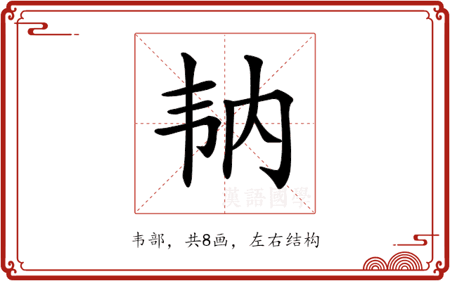 𩏼〕字拼音是(nà),部首是韦部,总笔画是8画