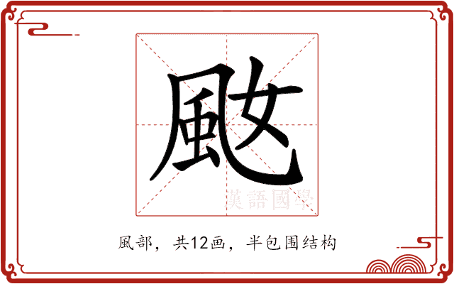 〔𩖠〕字是半包围结构,可拆字为“風、女”。