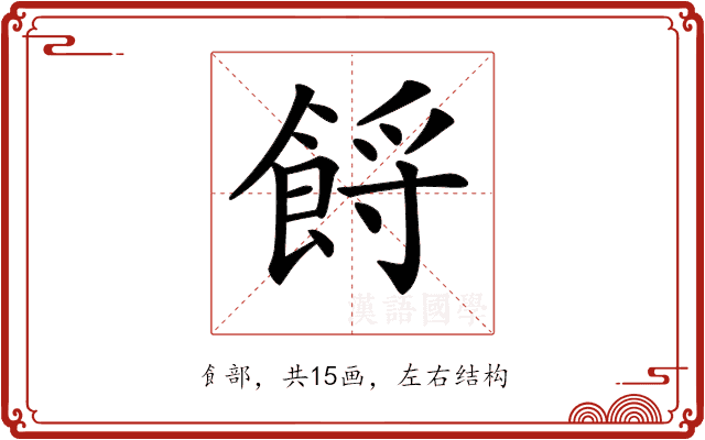 〔𩛝〕字拼音是(lèi),部首是飠部,总笔画是15画。