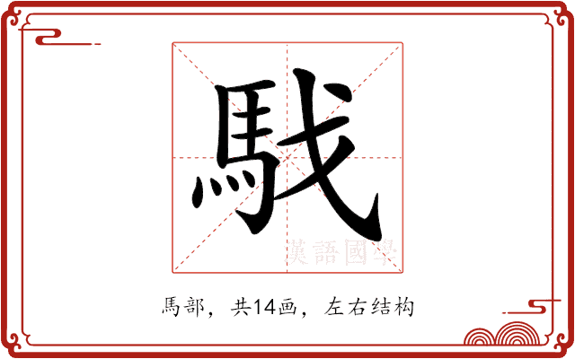 〔𩢅〕字是左右结构,可拆字为“馬、戈”。
