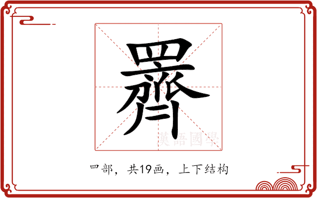 〔䍤〕字是上下结构,可拆字为“罒、齊”。