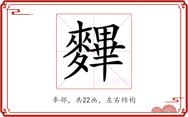𪍪,位于中日韩统一表意文字扩展区B,Unihan编码U+2A36A,读音是(bì),麥部,共22画,左右结构。