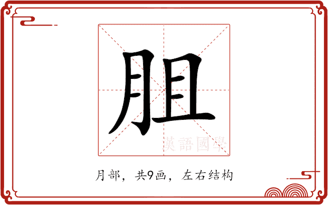 〔䏣〕字是左右结构,可拆字为“月、且”或“⺼、且”。