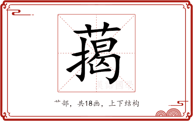 〔䔾〕字是上下结构,可拆字为“艹、揭”。