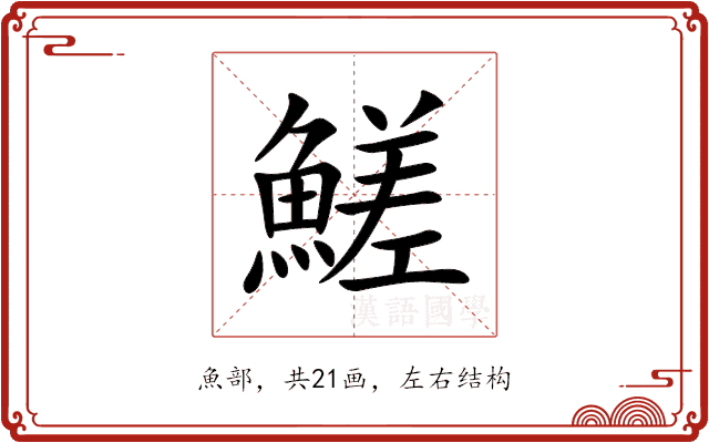 〔䱹〕字是左右结构,可拆字为“魚、差”。
