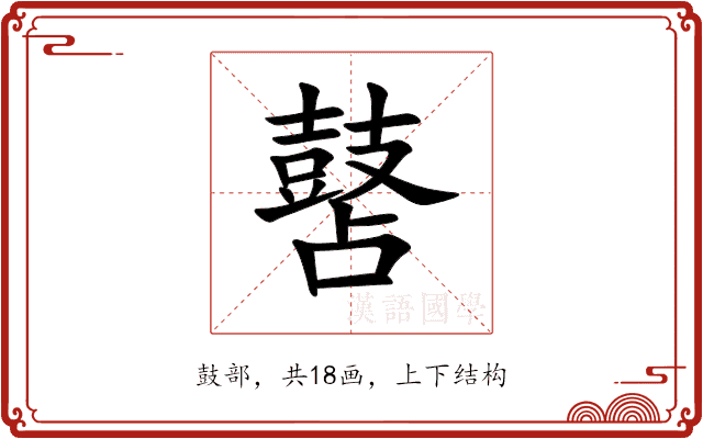 〔䵿〕字拼音是(tiè),部首是鼓部,总笔画是18画。
