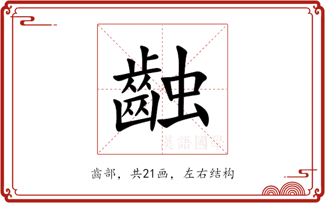 〔䶚〕字是左右结构,可拆字为“齒、虫”。