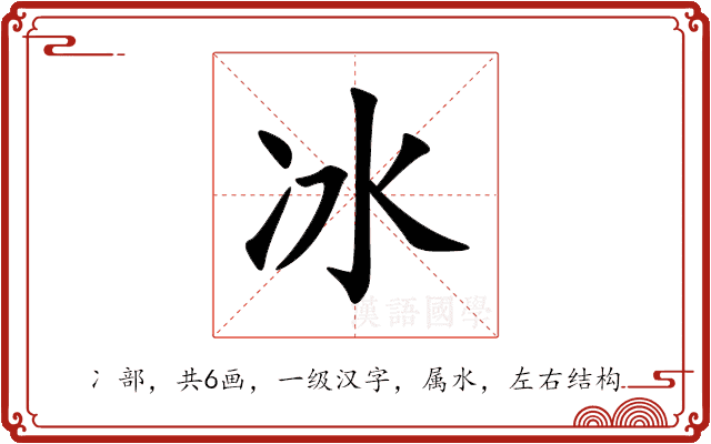 〔冰〕字是左右结构,可拆字为“冫、水”,五行属水。