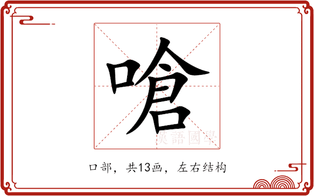 〔嗆〕字是左右结构,可拆字为“口、倉”。
