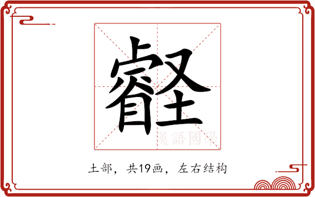 〔壡〕字拼音是(ruǐ),部首是土部,总笔画是19画。