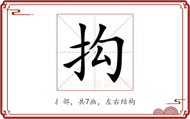 〔抅〕字是左右结构,可拆字为“扌、勾”。