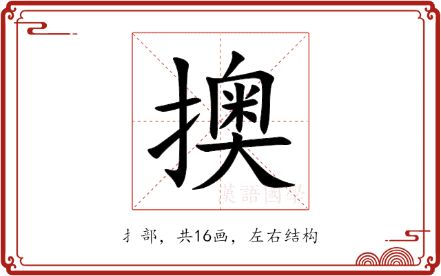 〔擙〕字是左右结构,可拆字为“扌、奥”或“扌、奧”。