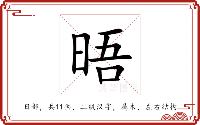 ◎(形声。从日,吾声。“日”表日光。本义:聪明,明白) 同本义 intelligent晤,明也。——《说文》。段玉裁注:“晤者,启之明也。”真宗英晤之主。——《宋史·真宗纪赞》少秀晤,能治《尚书》、《左氏春秋》。——《新唐书》