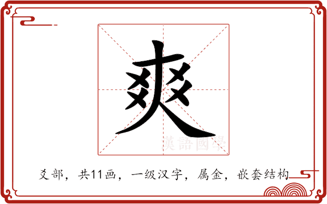 〔爽〕字是嵌套结构,可拆字为“大、㸚”,五行属金。