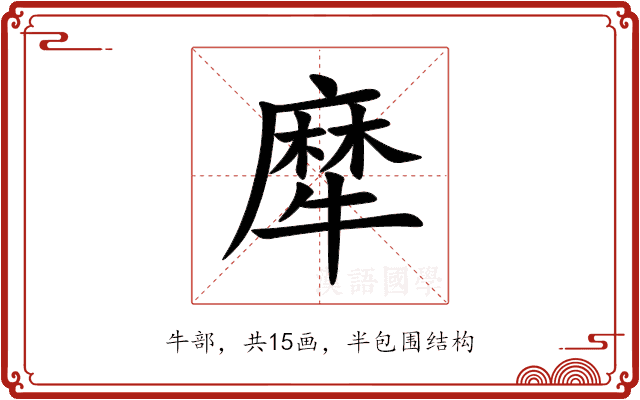 〔犘〕字是半包围结构,可拆字为“麻、牛”。