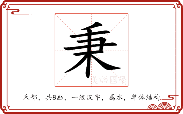 1.会意。从又,从禾,表示以手持禾。“又”篆体象一只手。本义:禾把,禾束。