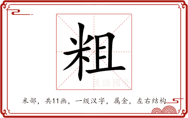 粗,大也。凡不精者皆曰粗。 —— 《广雅》其器高以粗。 —— 《礼记·月令》其声粗以厉。 —— 《礼记·乐记》粗布之衣。 —— 《荀子·正名》