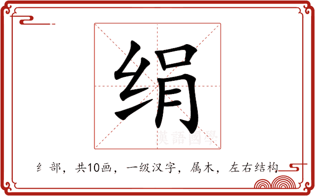 〔绢〕字是左右结构,可拆字为“纟、肙”,五行属木。