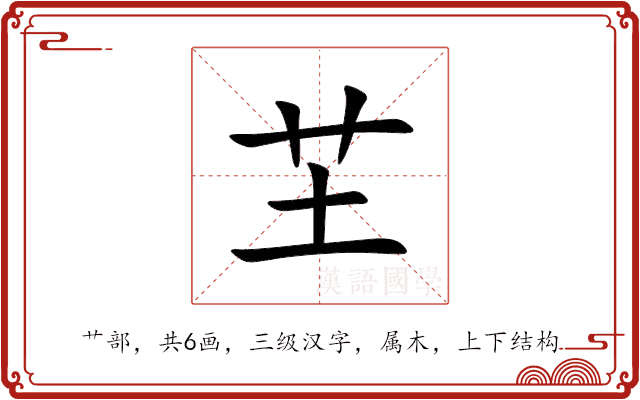 〔芏〕字是上下结构,可拆字为“艹、土”,五行属木。