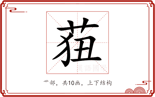 〔莥〕字是上下结构,可拆字为“艹、狃”。