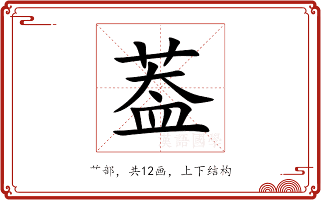 〔葢〕字拼音是(gài),部首是艹部,总笔画是12画