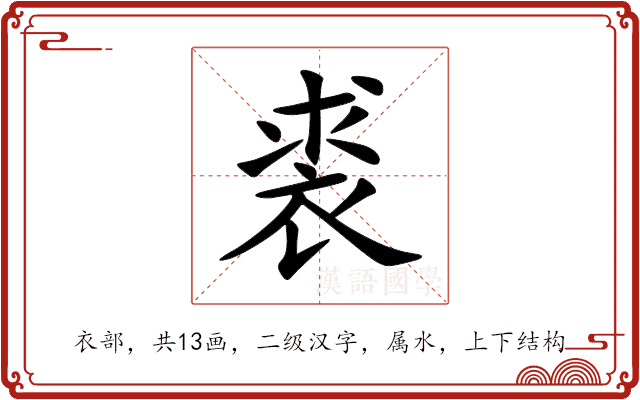 衣部共13画上下结构U+88D8CJK 基本汉字