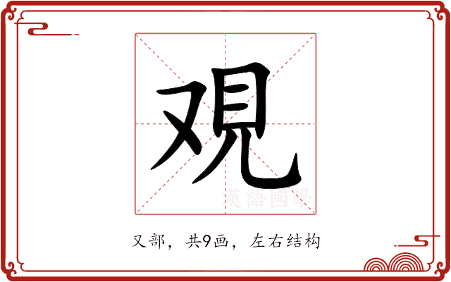 覌,位于中日韩统一表意文字 (基本汉字),Unihan编码U+898C,多音字,读音是(guān 或 guàn),又部,共9画,左右结构。