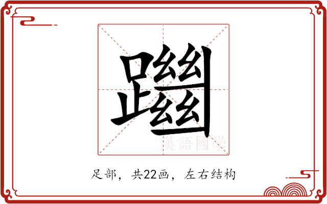 躖,位于中日韩统一表意文字 (基本汉字),Unihan编码U+8E96,读音是(duàn),足部,共22画,左右结构。
