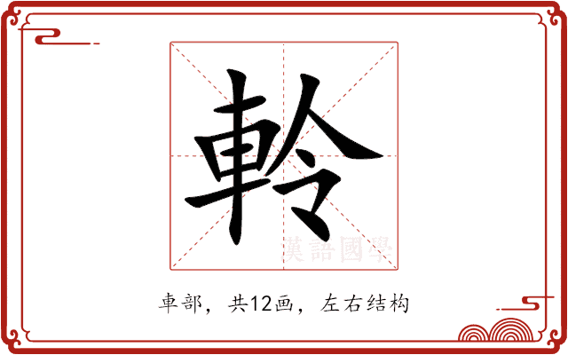 軨,位于中日韩统一表意文字 (基本汉字),Unihan编码U+8EE8,读音是(líng),車部,共12画,左右结构。