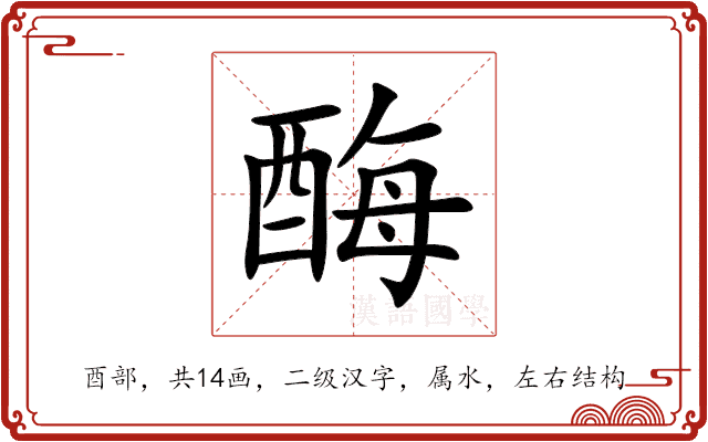 〔酶〕字拼音是(méi),部首是酉部,总笔画是14画