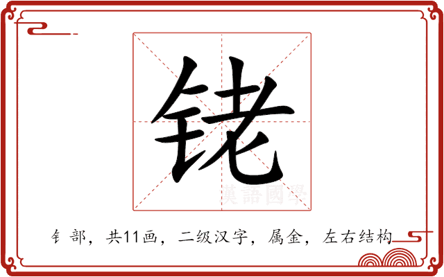 铑,通用规范汉字,二级汉字,序号4865,读音是(lǎo),钅部,共11画,形声字,左右结构,五行属金。