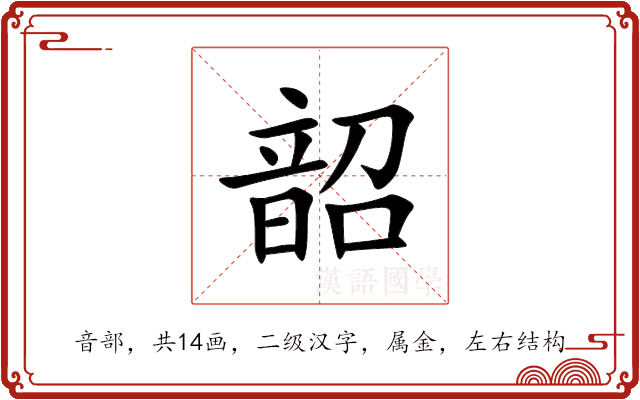 1.形声。从音,召声。本义:传说中的虞舜时代的乐曲名。