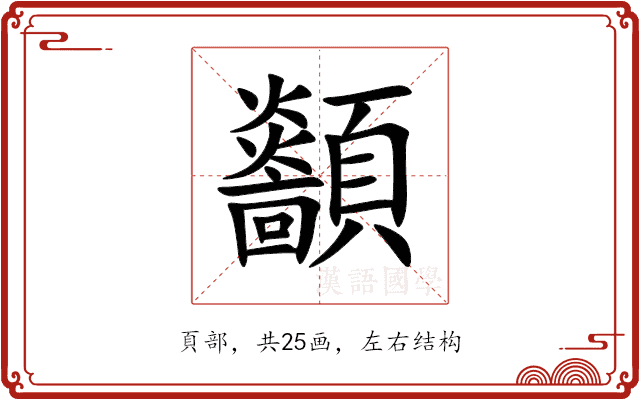 〔顲〕字拼音是(lǎn),部首是頁部,总笔画是25画